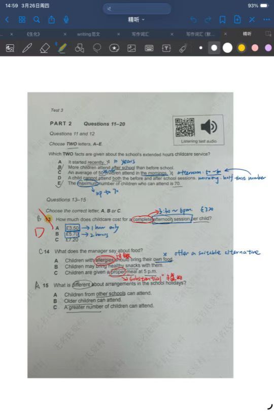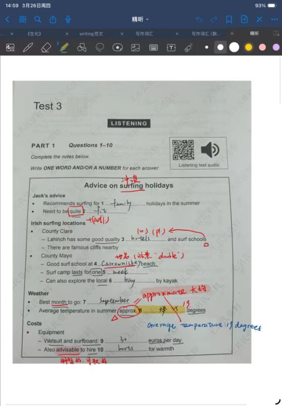 大量练习有助于适应多样口音并快速抓取关键词。雅思听力涵盖英音、澳音、印度音等多种口音。在平时练习中,我会特意选择不同口音的材料来进行泛听,让自己提前适应并熟悉。在实战中,预判答案词性和圈画关键词(如转折词but, however,以及人名、时间)至关重要。